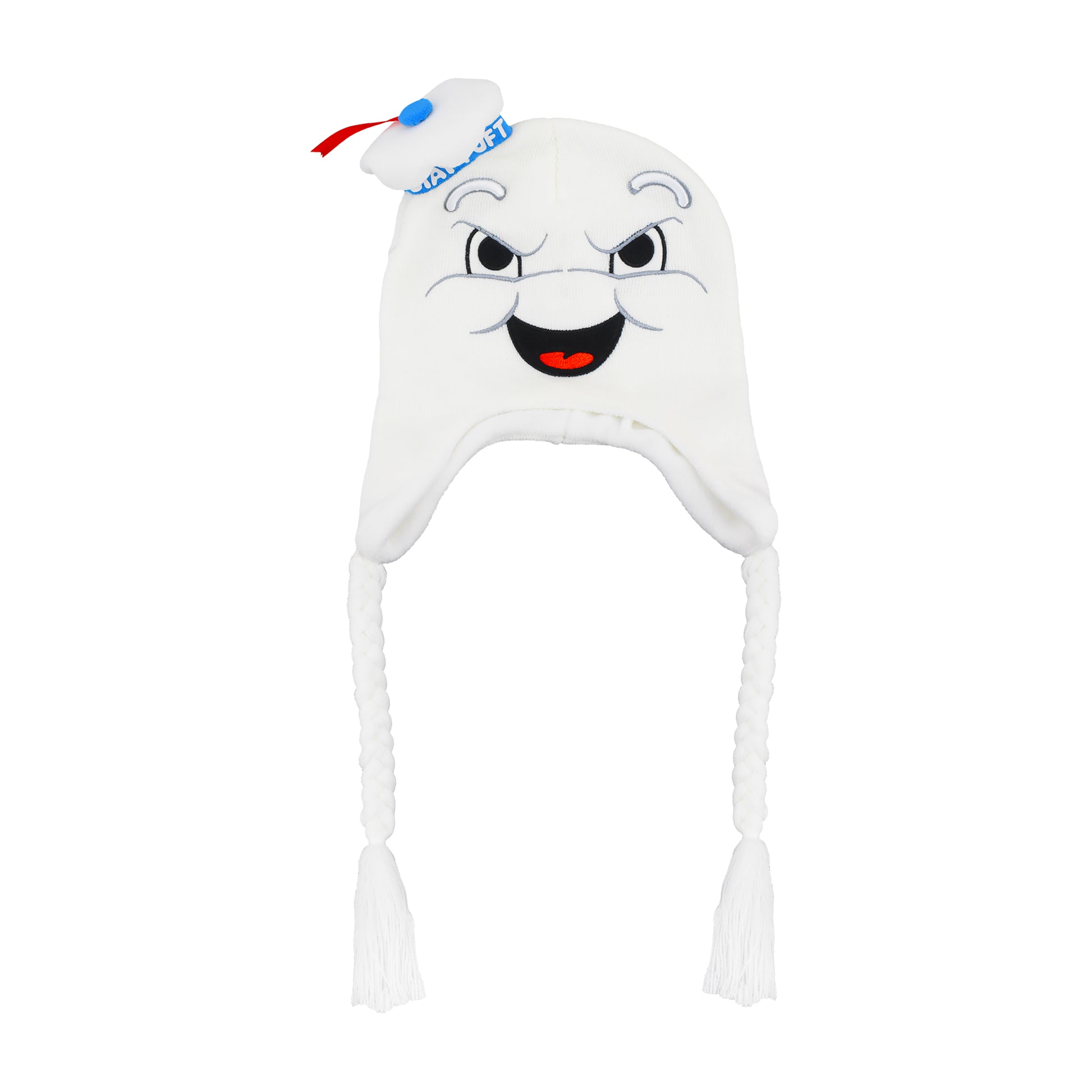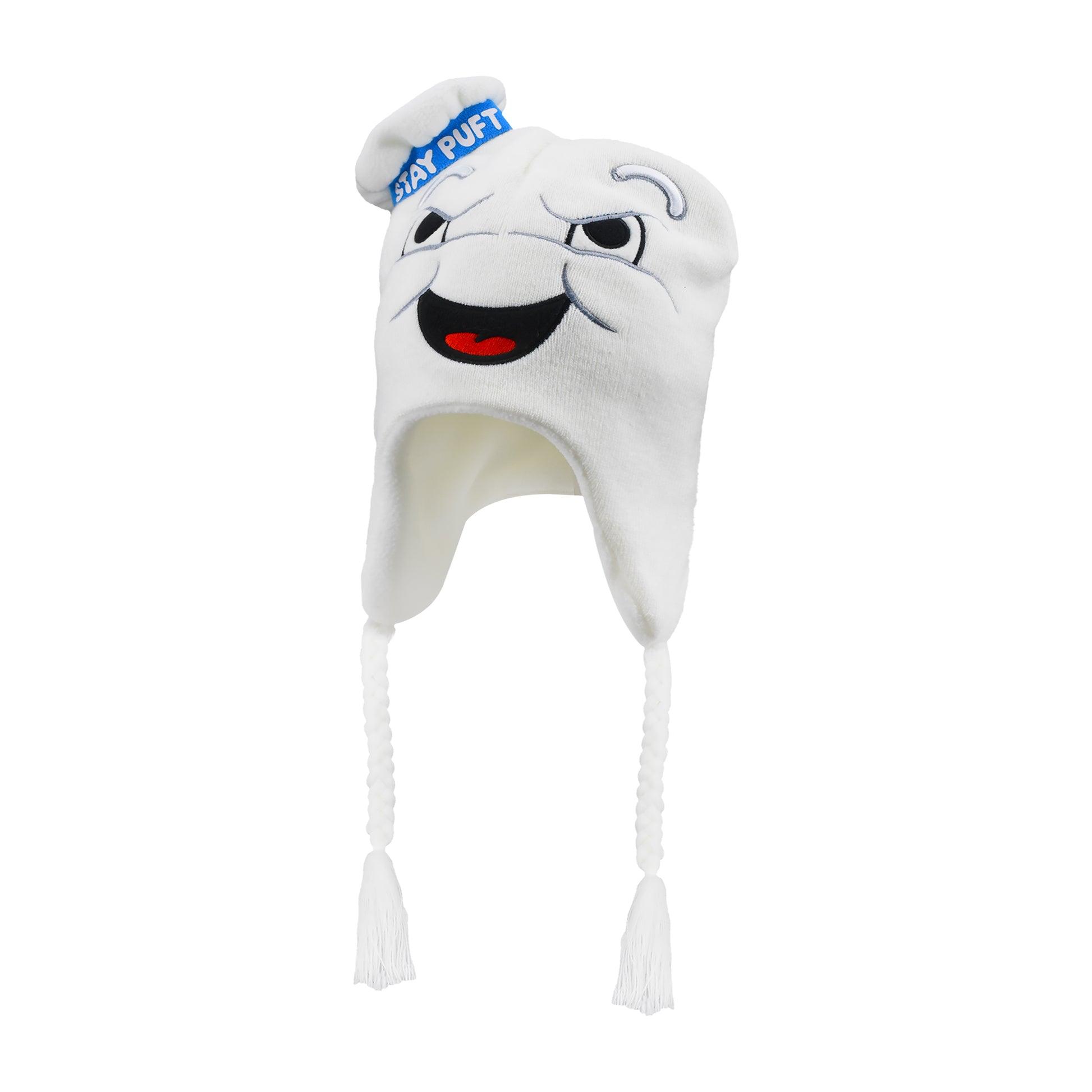 Ghostbusters Beanie Hat, Stay Puft Marshmallow Man Peruvian Winter Knit Cap with Tassels, White, One Size