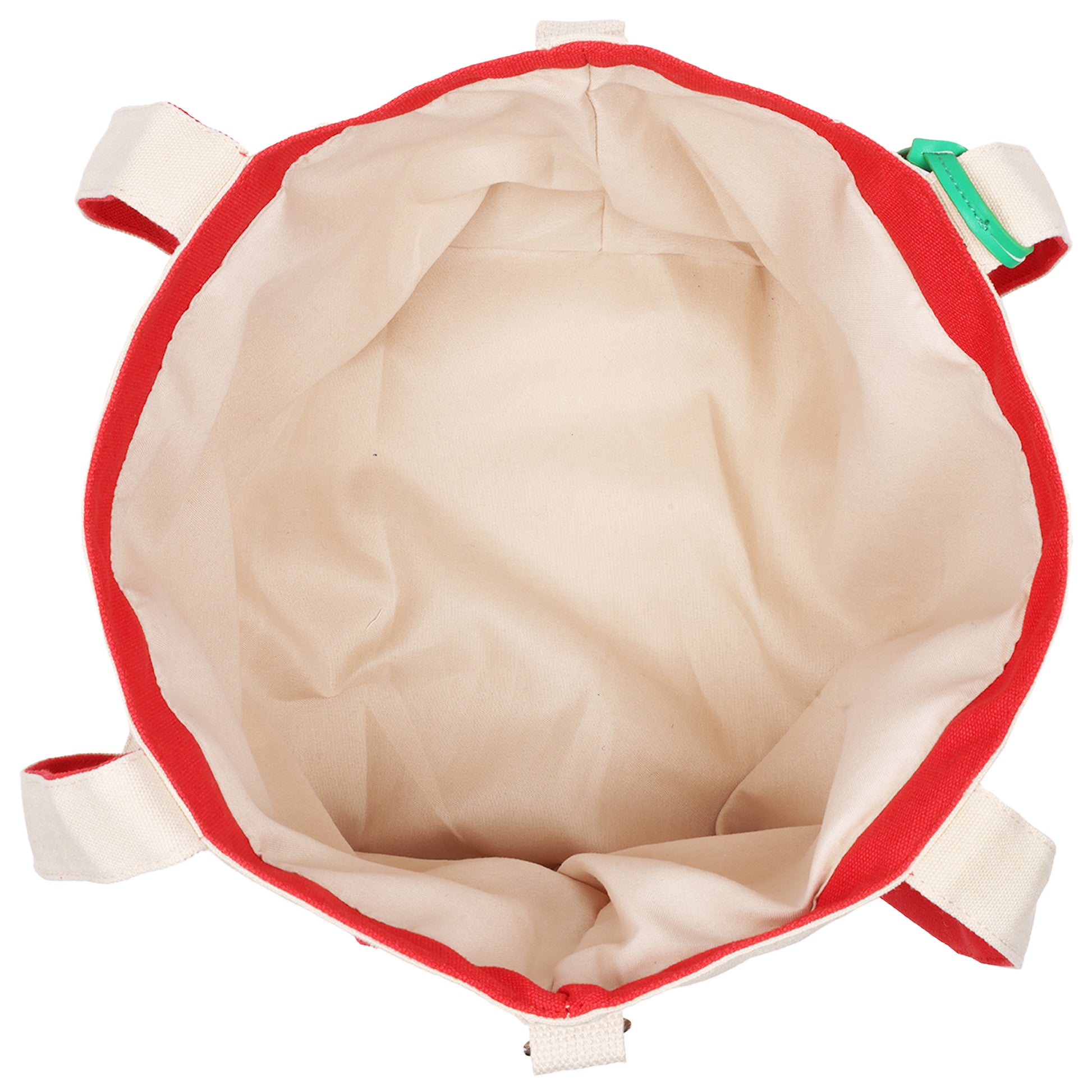 -Durable cotton canvas construction, Allover cherry print for a playful, retro-inspired look with Bold contrast trim for added visual pop