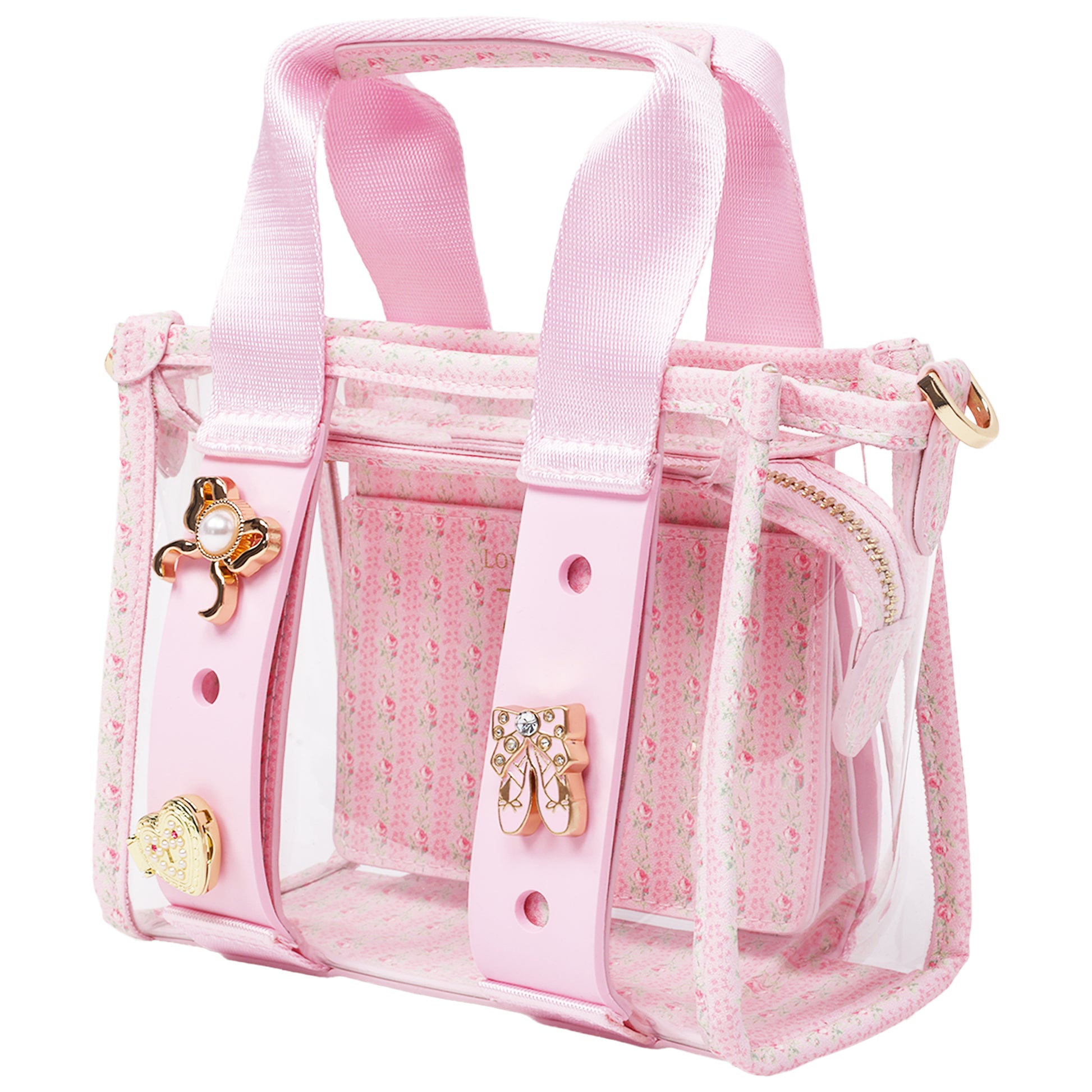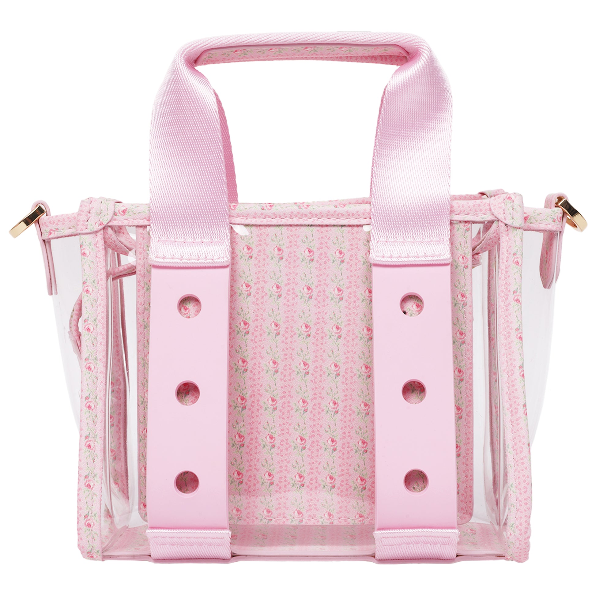 -Clear structured mini tote with romantic floral print accents, Compact size ideal for day, night, or special events