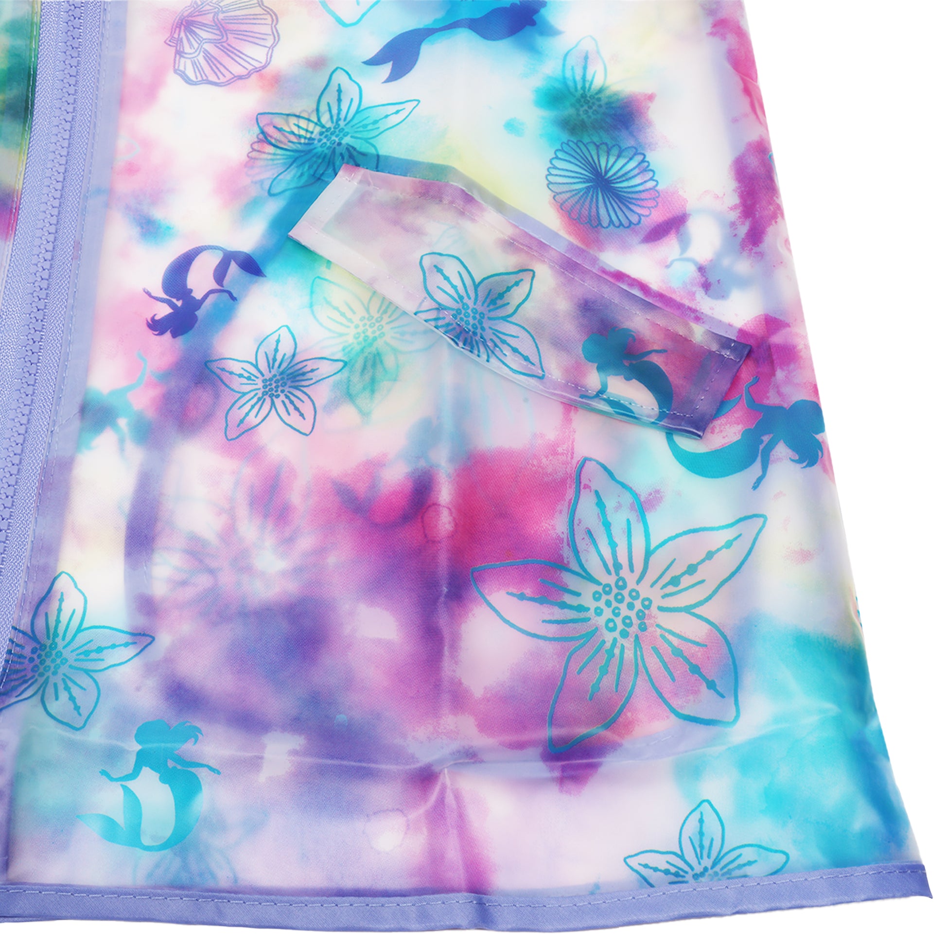 Let your little mermaid shine, even on rainy days! This officially licensed Disney The Little Mermaid toddler girls’ raincoat is perfect for ages 2–3. Featuring a magical pastel tie-dye design with Ariel silhouettes and sea-inspired floral patterns, this waterproof jacket keeps your little one dry while adding a splash of color to every puddle adventure. The hooded design, front zipper, and front pockets make it as practical as it is adorable.