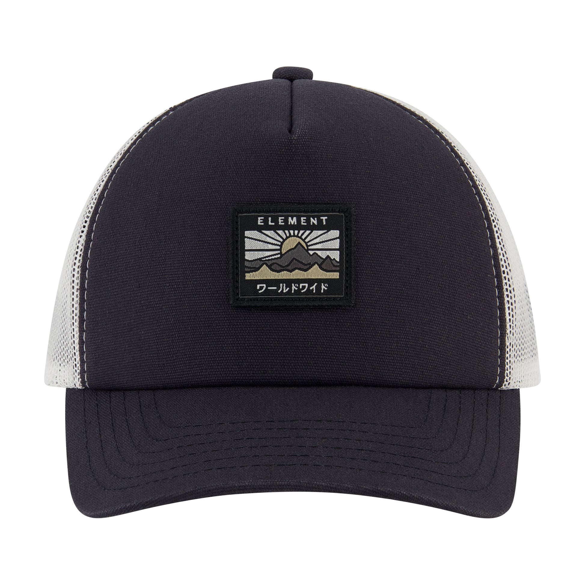 Add an adventurous touch to your style with this Element Logo Trucker Hat. Featuring a front embroidered patch with a striking mountain graphic and Japanese text, this hat blends style with outdoor vibes. The breathable mesh back and adjustable snapback closure ensure a comfortable fit, while the structured front and curved brim offer a classic look. Whether you're out on the trails or in the city, this hat is the perfect companion for your everyday wear.