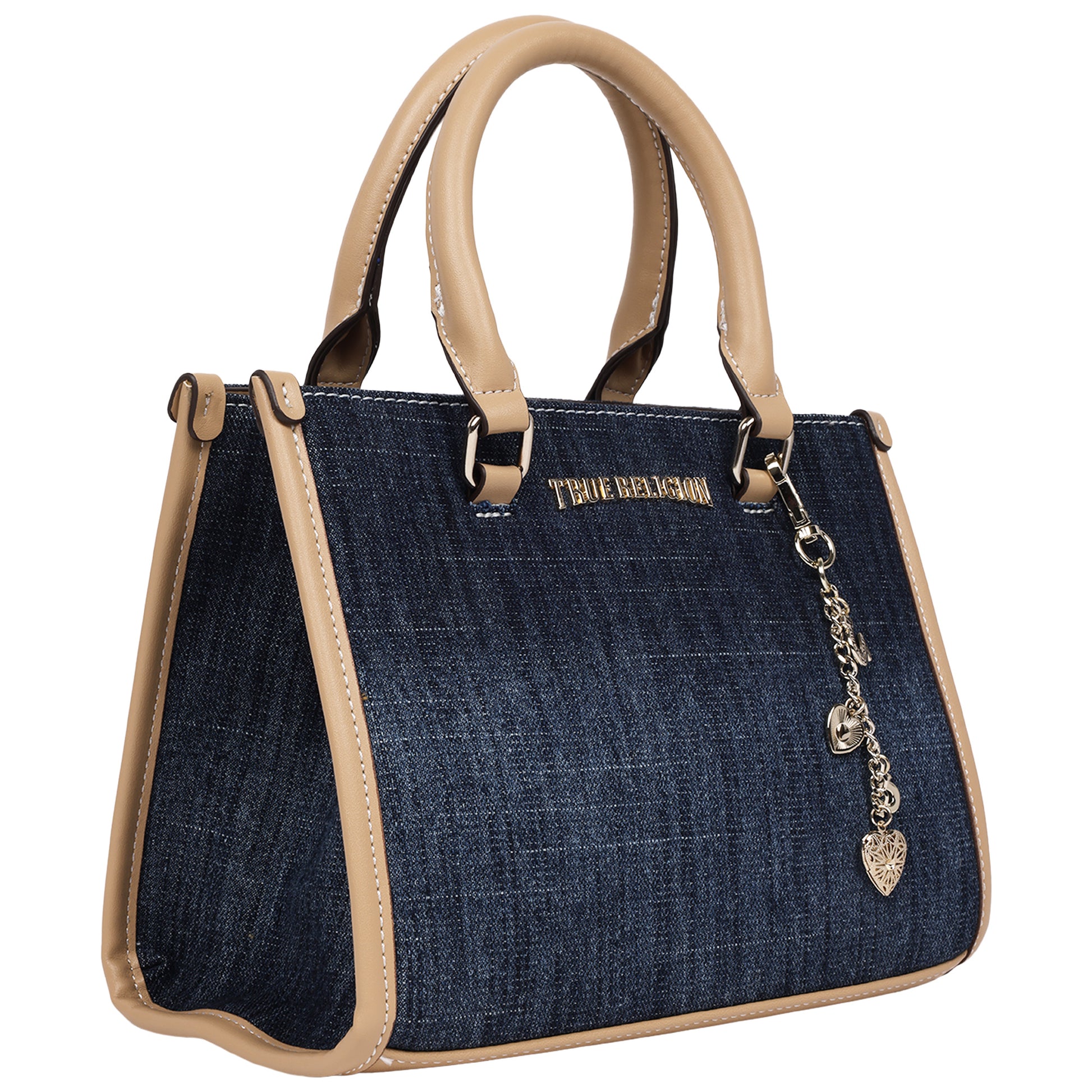 The True Religion Horseshoe Dangle Colored Denim Tote blends classic denim style with chic detailing. Featuring a structured silhouette with contrast trim, this tote stands out with signature gold-tone logo hardware and playful horseshoe and heart charms. Designed with both top handles and a detachable logo strap, it’s versatile enough to carry by hand, over the shoulder, or crossbody. The spacious interior with multiple compartments keeps your essentials organized while adding a polished touch to your everyday style.