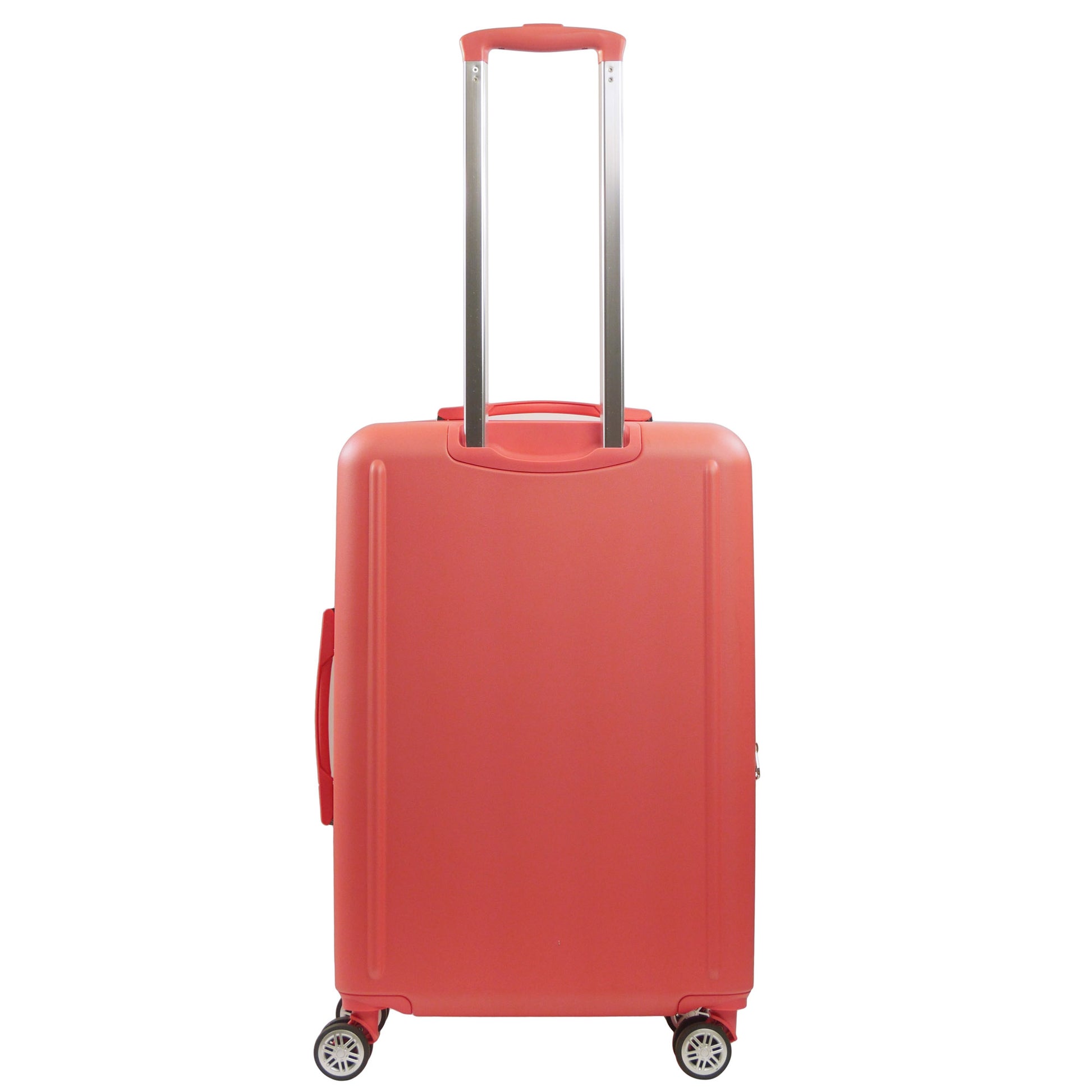 Bring tropical flair to your travels with the Tommy Bahama 26.5" hard-sided spinner luggage. Featuring a striking 3D pineapple design, this vibrant coral suitcase combines island-inspired style with practical functionality. Its durable hardshell exterior protects your belongings, while the smooth-rolling spinner wheels and telescopic handle ensure effortless mobility. Inside, you'll find an organized interior with compression straps and zippered compartments for easy packing. The included coral drawstring bag adds versatility, perfect for carrying extra essentials or souvenirs. Designed for travel enthusiasts who appreciate quality and style, this suitcase makes every journey a getaway.