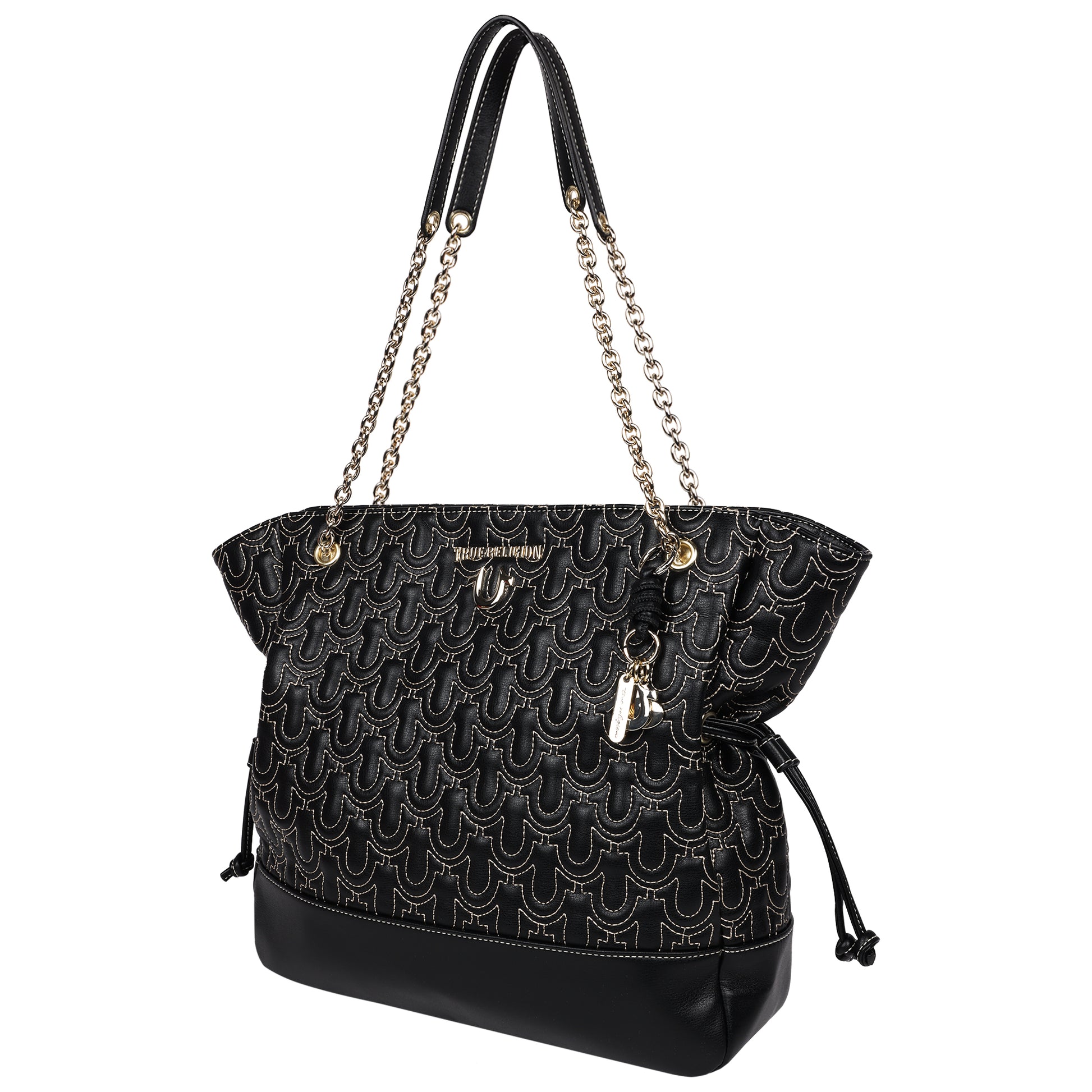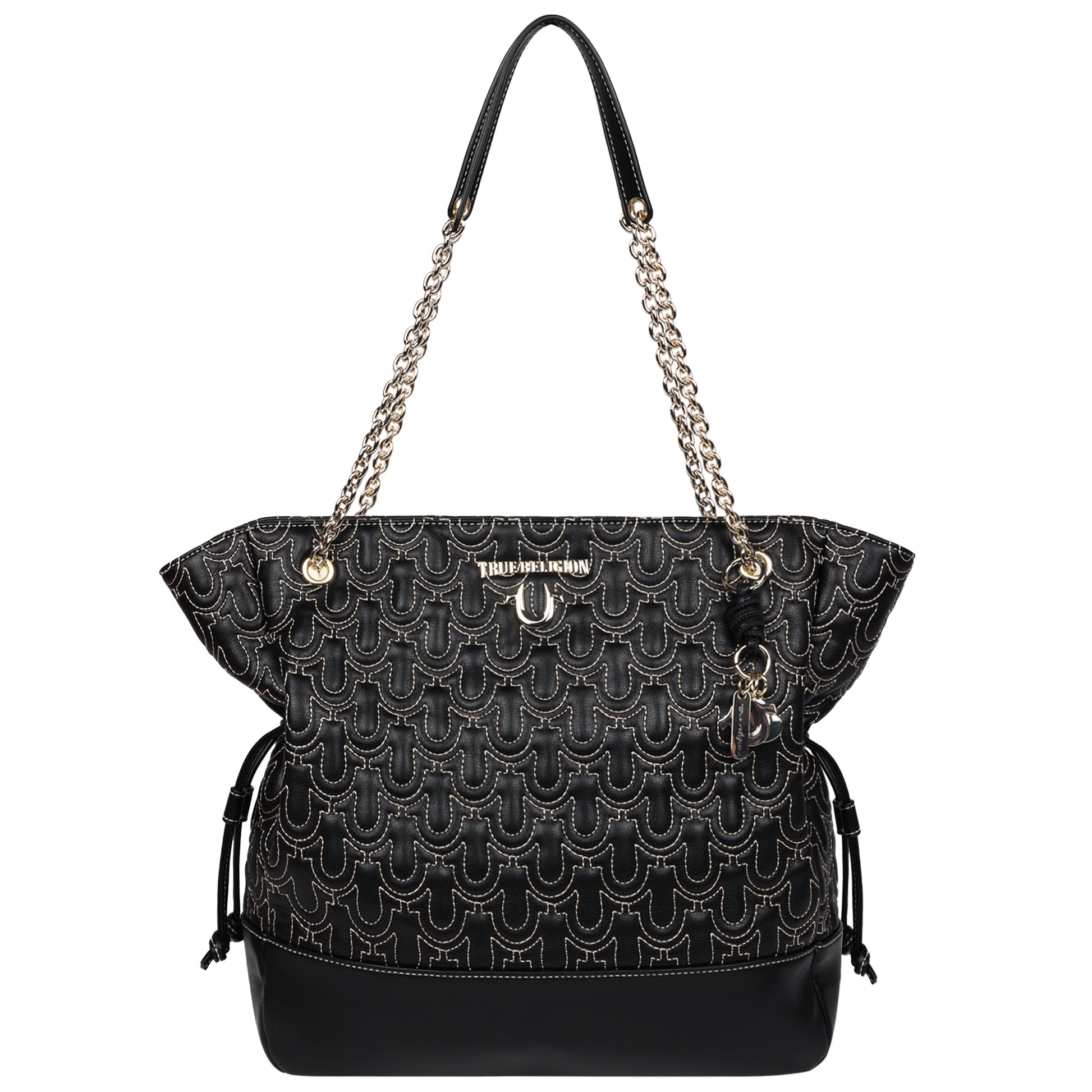 The True Religion Cinch Side Soft Logo Tote blends iconic style with everyday function. Featuring an allover stitched horseshoe pattern, gleaming chain-link straps with shoulder rests, and adjustable cinch sides for a custom shape, this spacious tote is perfect for workdays or weekends. Finished with signature logo hardware and a roomy interior for all your essentials.