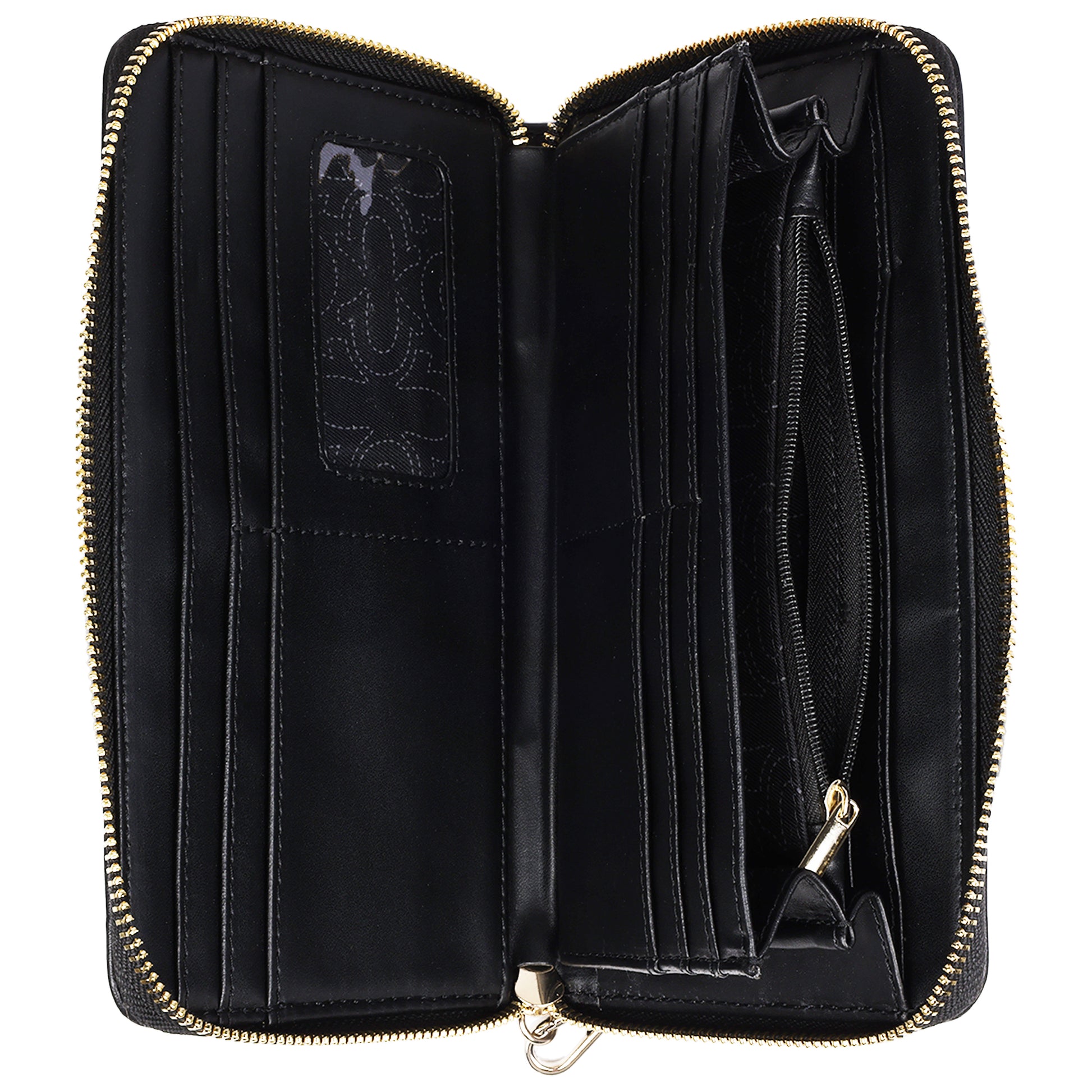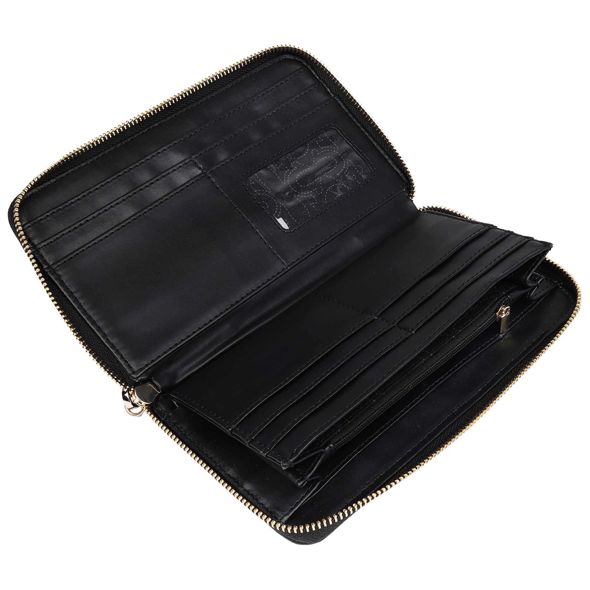 -Interior: Multiple card slots, ID window, and zip coin pocket, Spacious interior for cash, cards, and small essentials