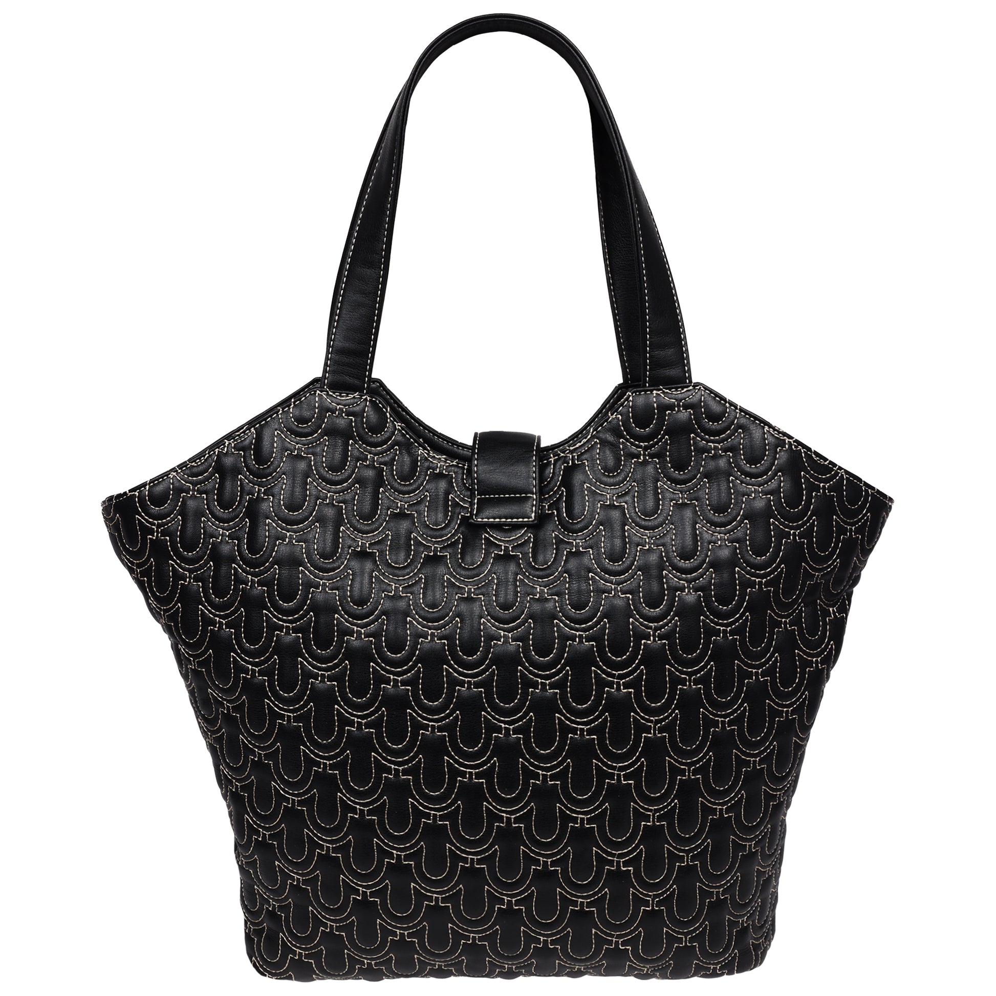 Elevate your everyday style with the True Religion Horseshoe Quilt Charm Tote. Featuring an allover quilted horseshoe pattern, this spacious tote is accented with gold-tone hardware, a statement padlock detail, and a removable branded charm. Perfect for carrying your essentials in chic, signature style.