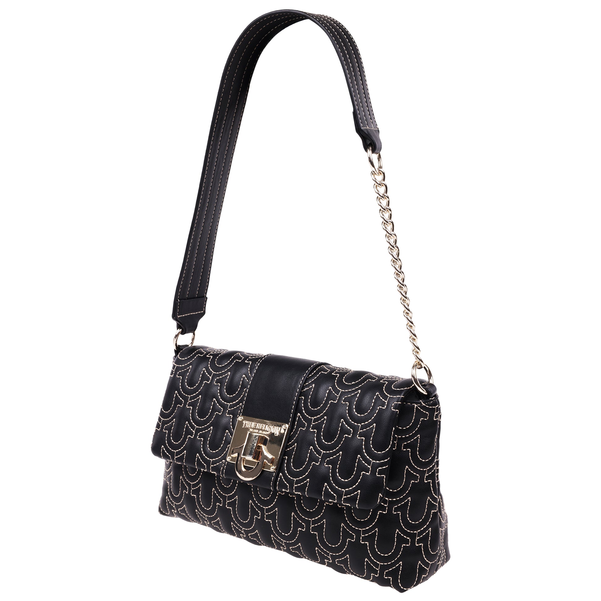 True Religion Horseshoe Quilt Logo Plaque Flap Shoulder Bag