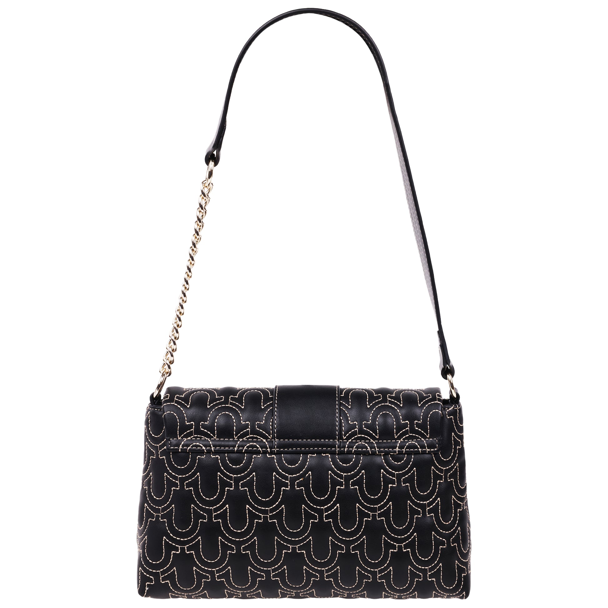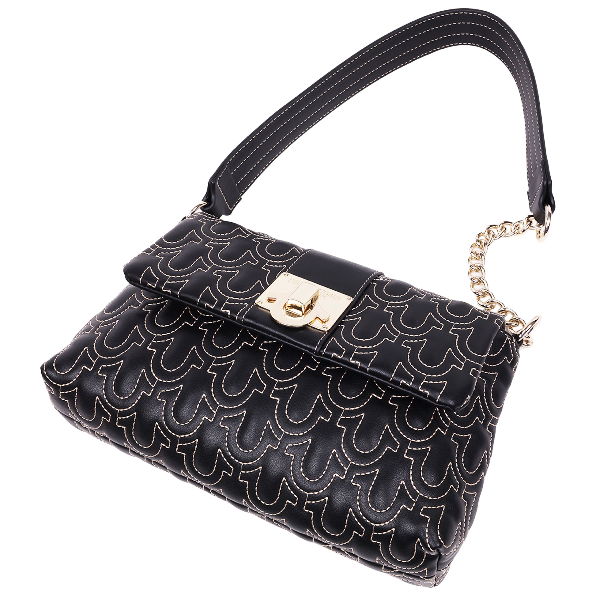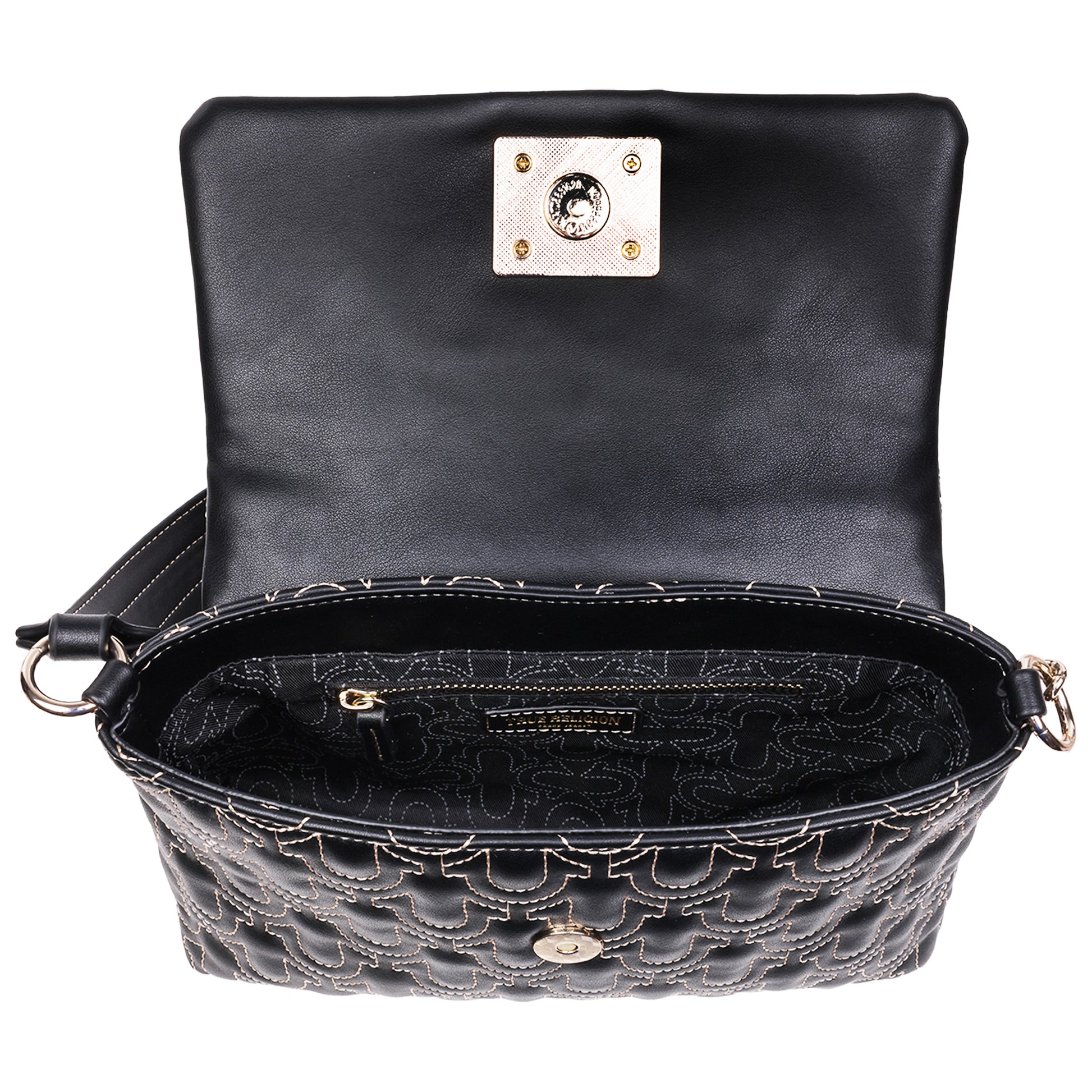 -Exterior Quilted all-over horseshoe stitch design, Polished gold-tone logo plaque flap