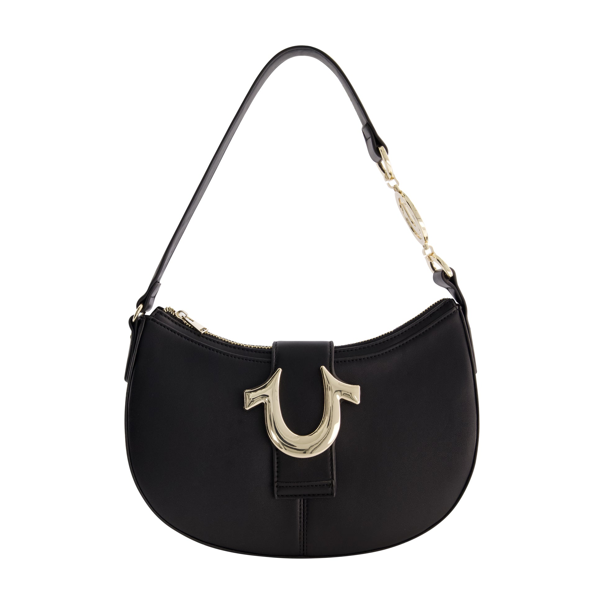 True Religion Horseshoe Strap Crescent Hobo, BLACK