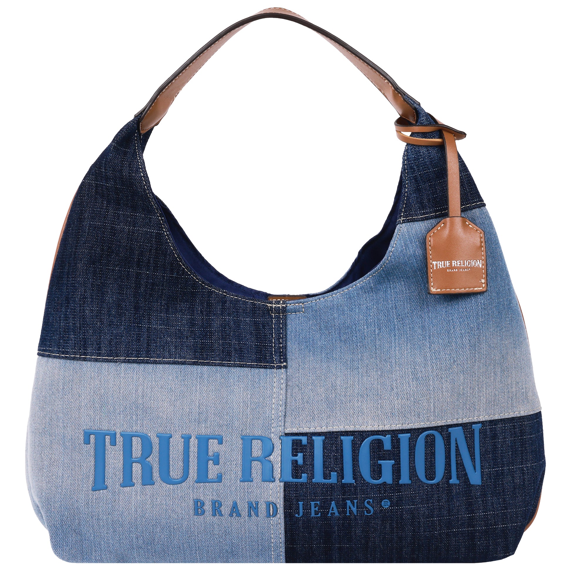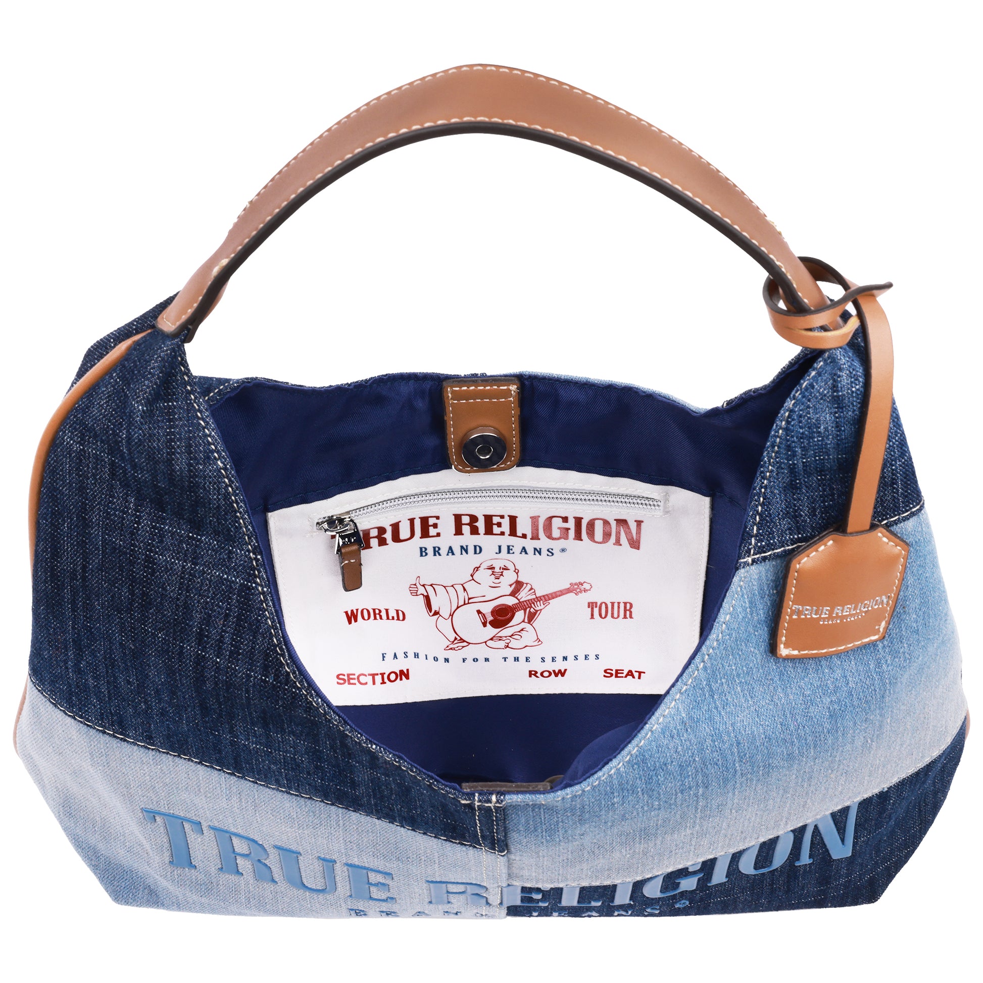 A bold remix of classic denim, the True Religion Patchwork Hobo blends vintage vibes with signature streetwear style. Featuring a striking four-quadrant patchwork design and oversized True Religion logo print, this bag makes a statement from every angle. Designed for everyday wear with an easy shoulder carry and roomy interior.