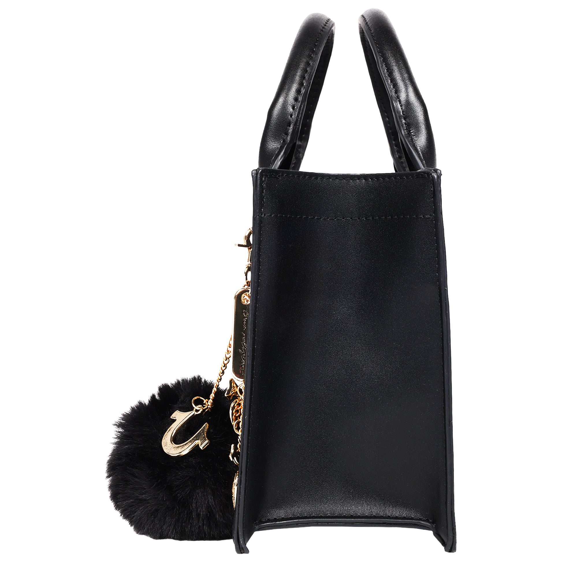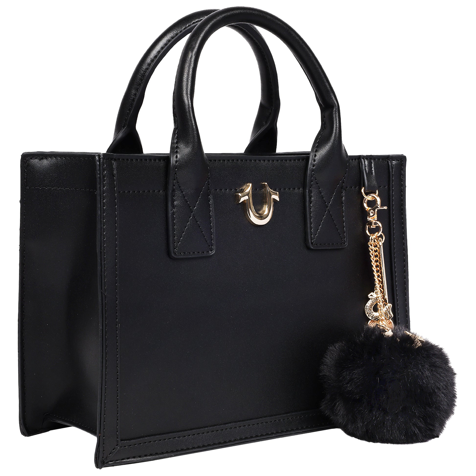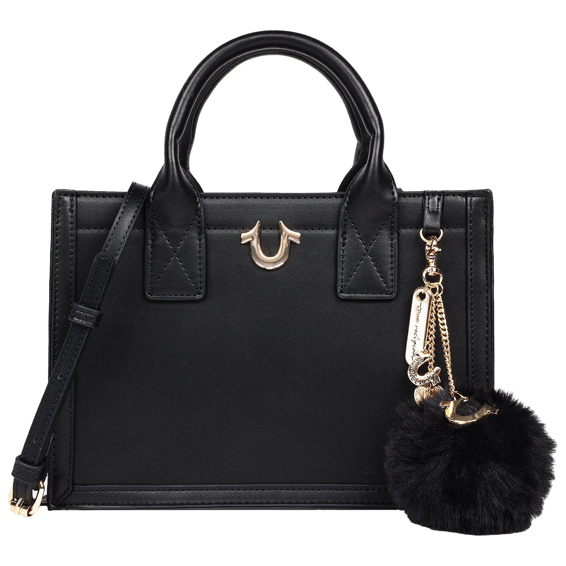 Add a playful yet polished touch to your look with the True Religion Pom Dangle Modern Tote. Featuring a structured silhouette, gold-tone hardware, and the iconic horseshoe emblem, this tote stands out with its removable pom-pom charm and logo chain accents. Perfect for work or weekend, it offers a spacious interior and a removable crossbody strap for versatile carry.