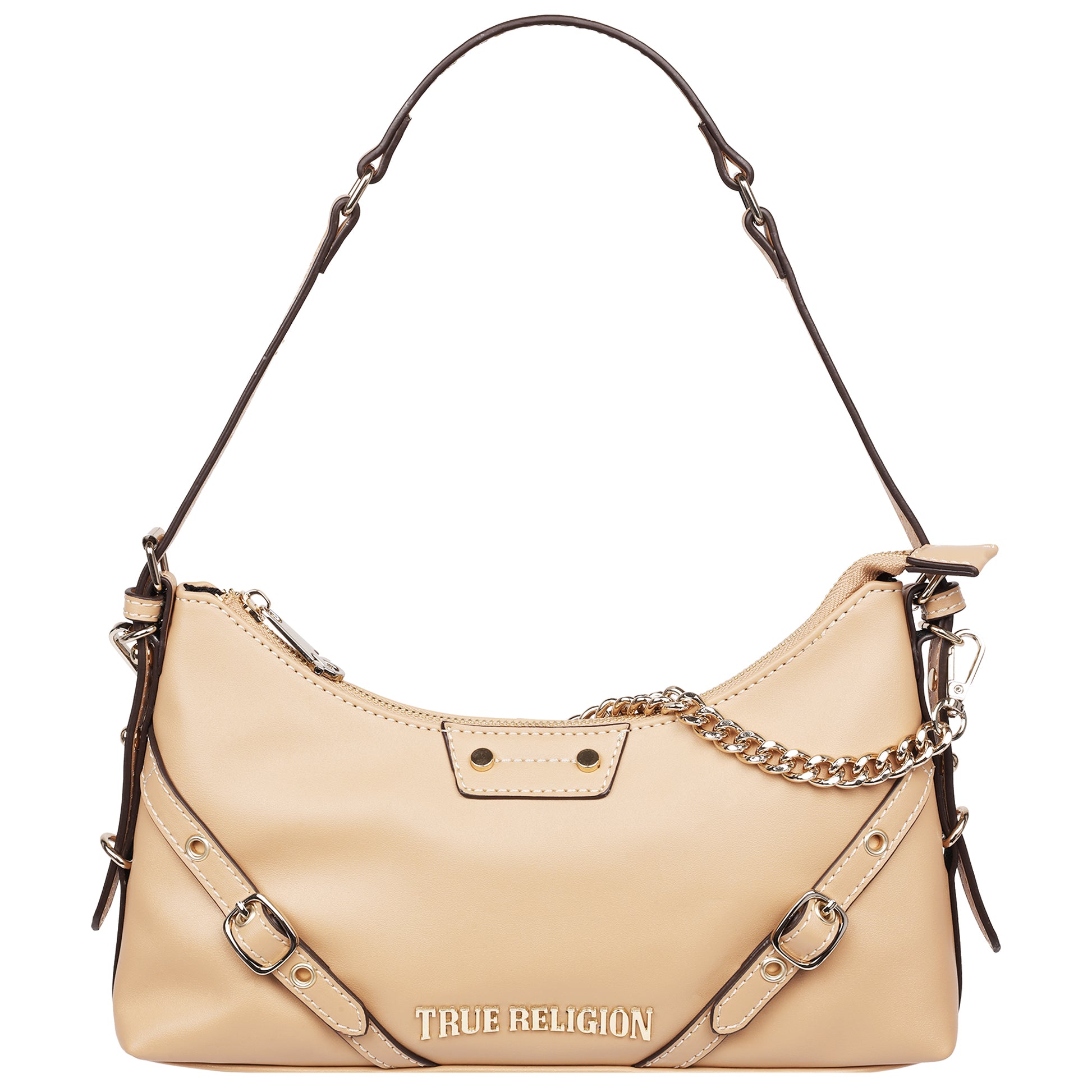 Elevate your everyday style with the True Religion Smooth PU Belted Shoulder Bag. Designed with sleek belt detailing, gold-tone chain accents, and the signature True Religion logo, this bag blends modern sophistication with a touch of edge. Perfect for day-to-night wear, it features a spacious interior and versatile straps for multiple carry options.