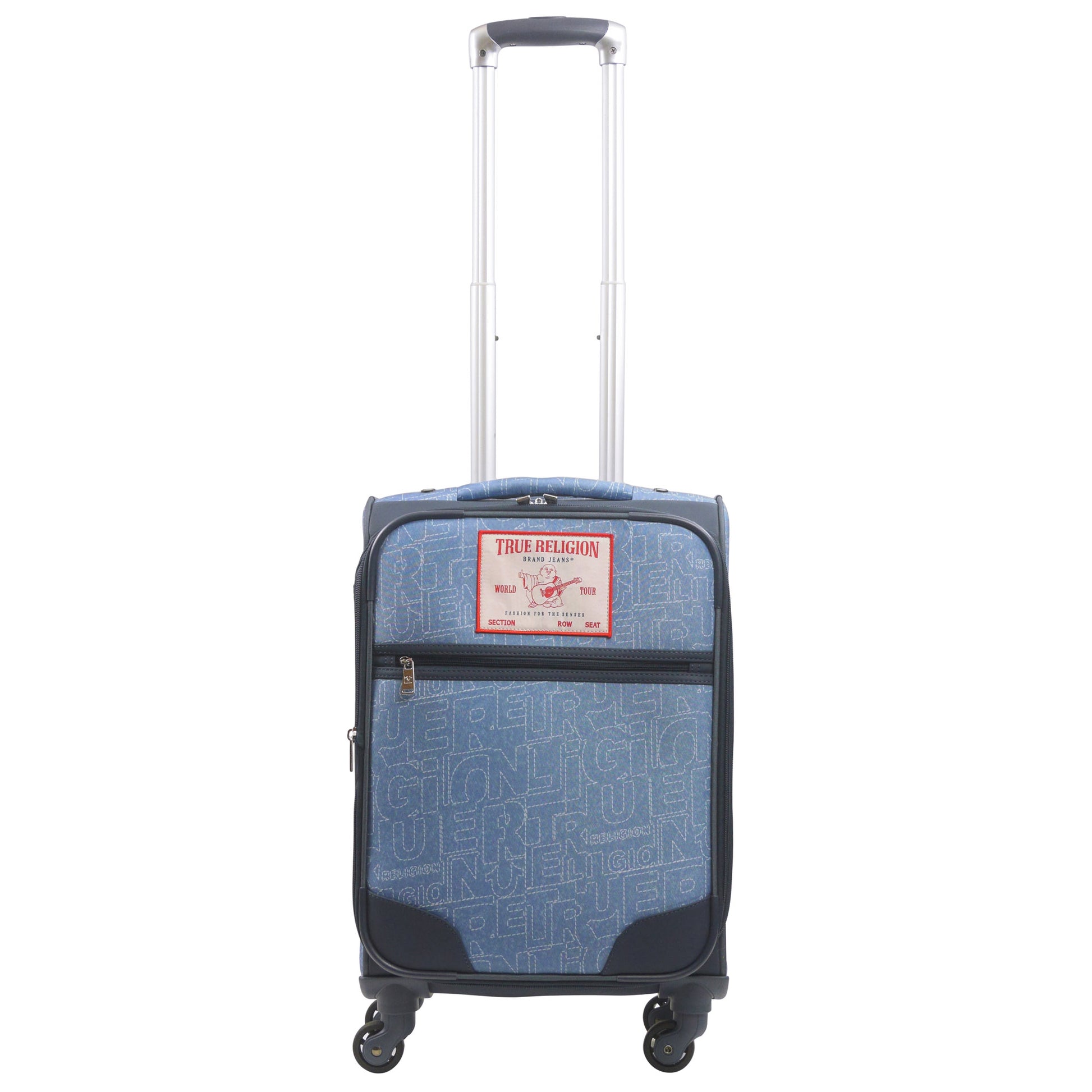 Travel in iconic style with the True Religion Soft-Sided 23" Expandable Spinner Luggage. Featuring a denim-inspired print and the signature Buddha patch, this spinner luggage merges modern functionality with a classic aesthetic. Its expandable design allows for extra packing space, while the four spinner wheels ensure effortless mobility. The interior is thoughtfully organized with a mesh zip pocket and compression straps, keeping your essentials secure and tidy on the go. Whether it's a weekend getaway or an extended trip, this durable luggage is your ultimate travel companion.