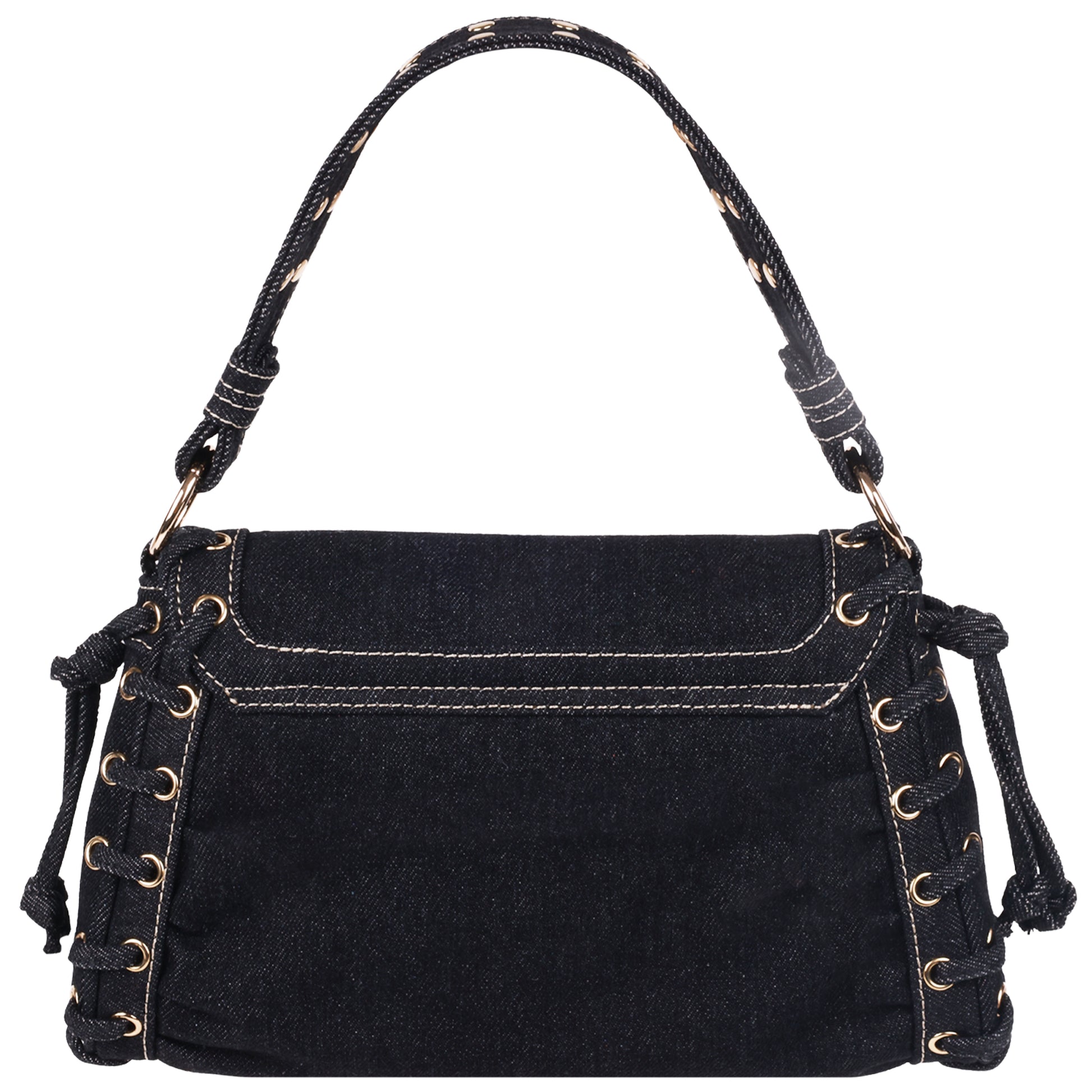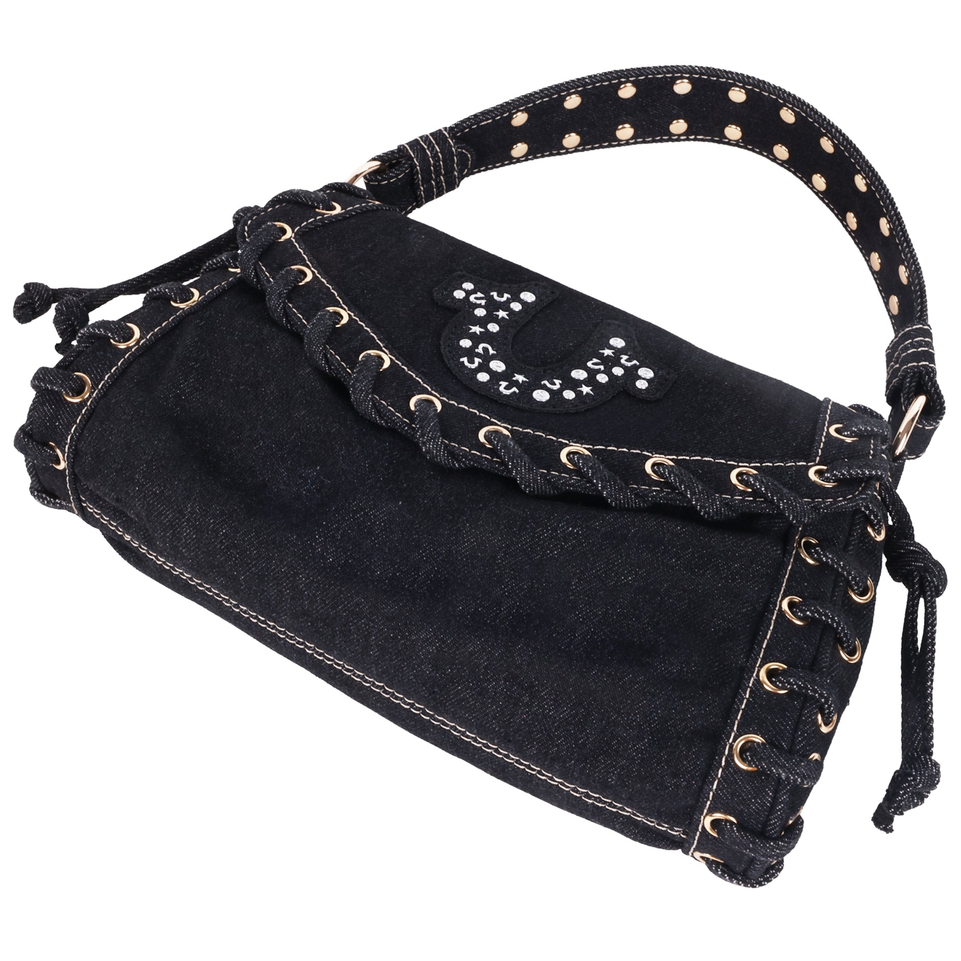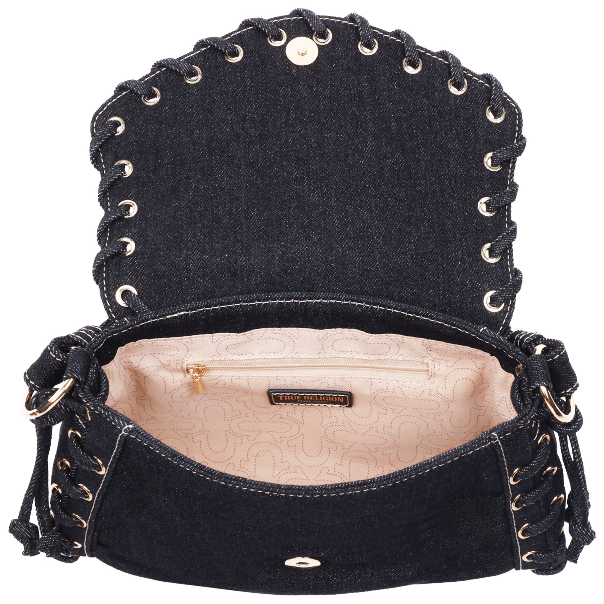 True Religion Studded Horseshoe Eyelet Denim Flap Bag