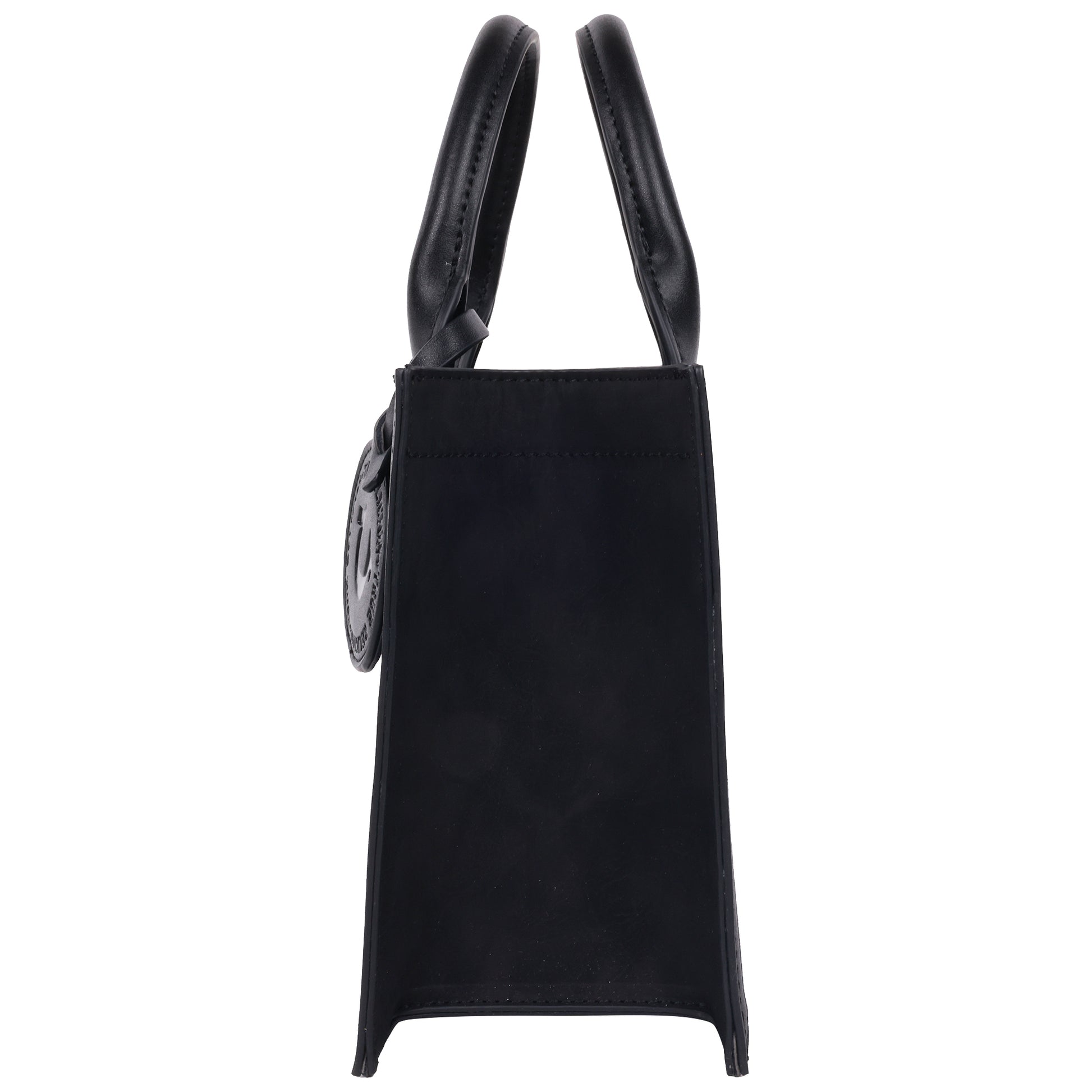 Sleek, structured, and undeniably bold—this True Religion Suede PU Box Tote is a modern must-have. Featuring a boxy silhouette, embossed round logo tag, and silver-tone branding at the front, this piece delivers timeless edge in a compact size that fits your day-to-night essentials.
