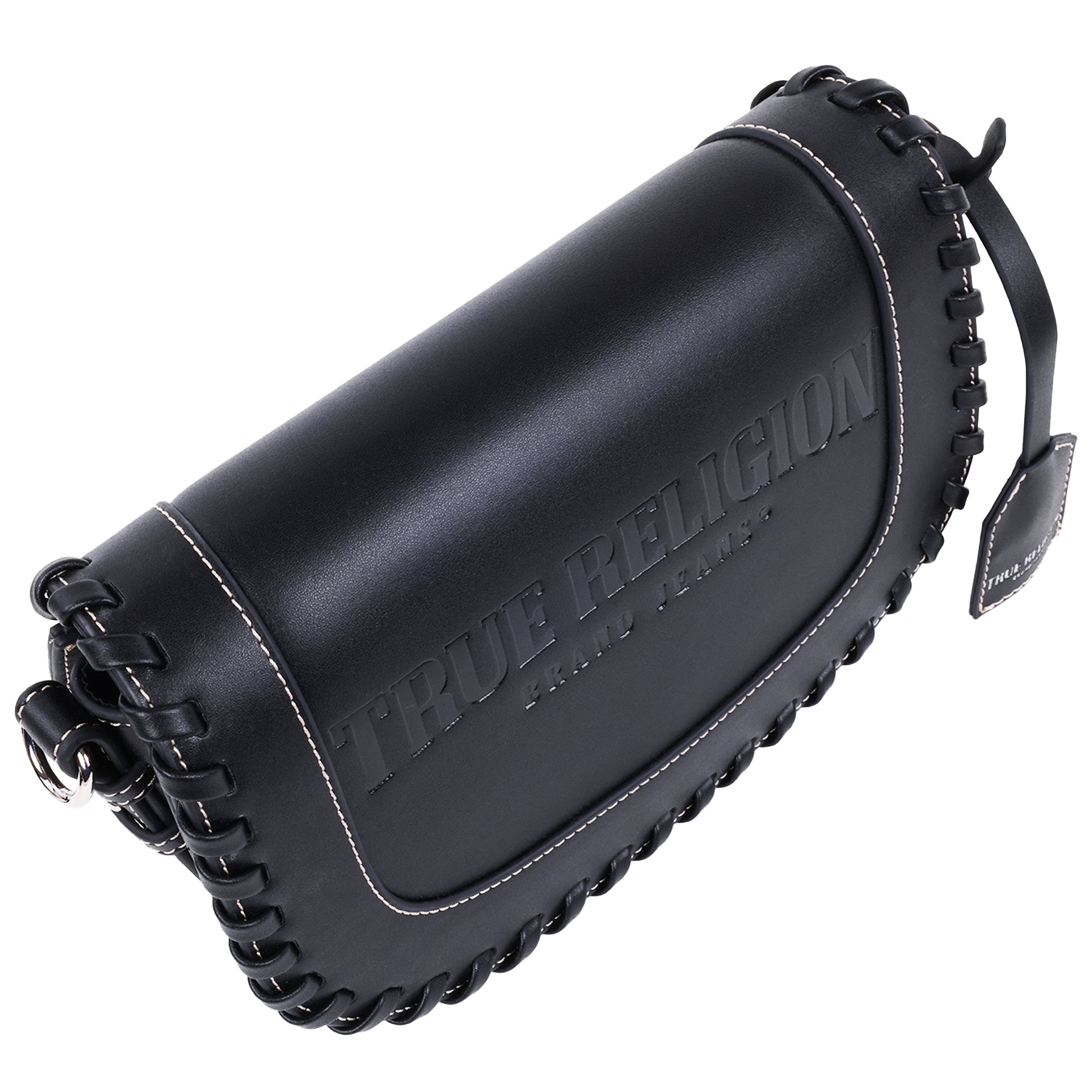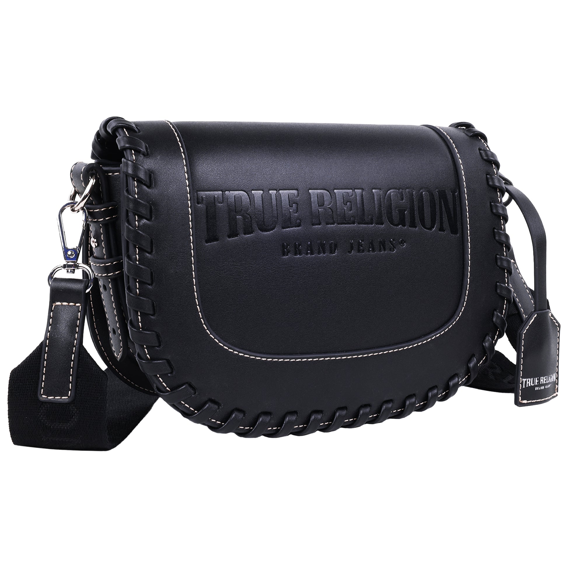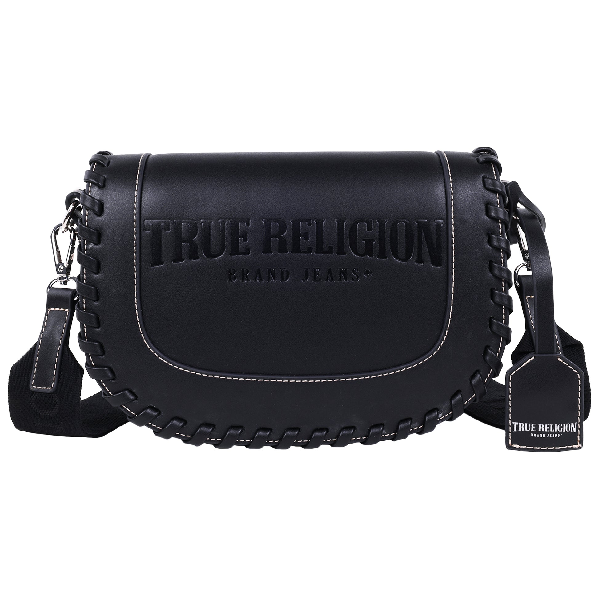 Western-inspired edge meets iconic branding in the True Religion Whip Stitch Saddle Bag. Crafted with a rich, structured finish and bold whipstitch detailing, this flap bag features a debossed True Religion logo and wide canvas logo strap for added attitude. Whether worn crossbody or on the shoulder, it's a standout piece for street-style loyalists. Ideal for adding a bold, branded touch to casual looks.