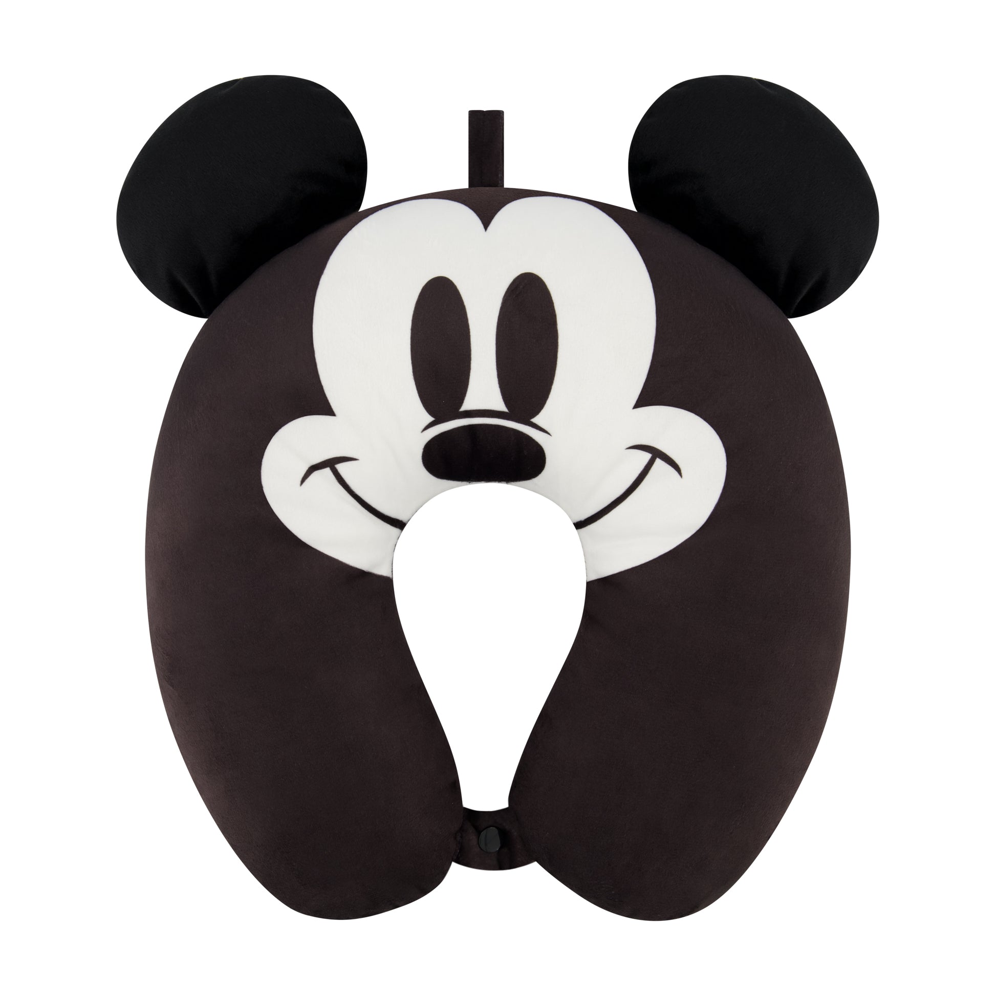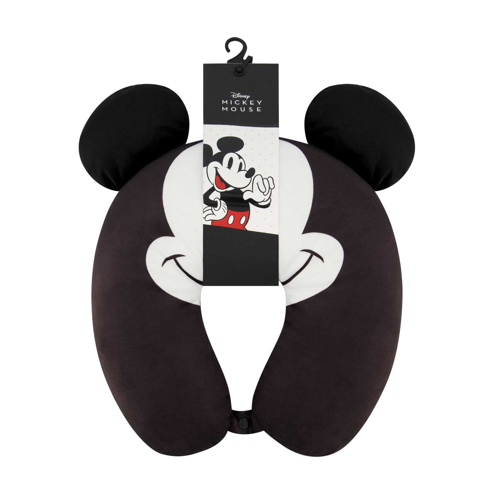 Disney Mickey Mouse Neck Pillow, Travel Accessories with 3D Ears for Airplane, Car and Office, Comfortable and Breathable, Black