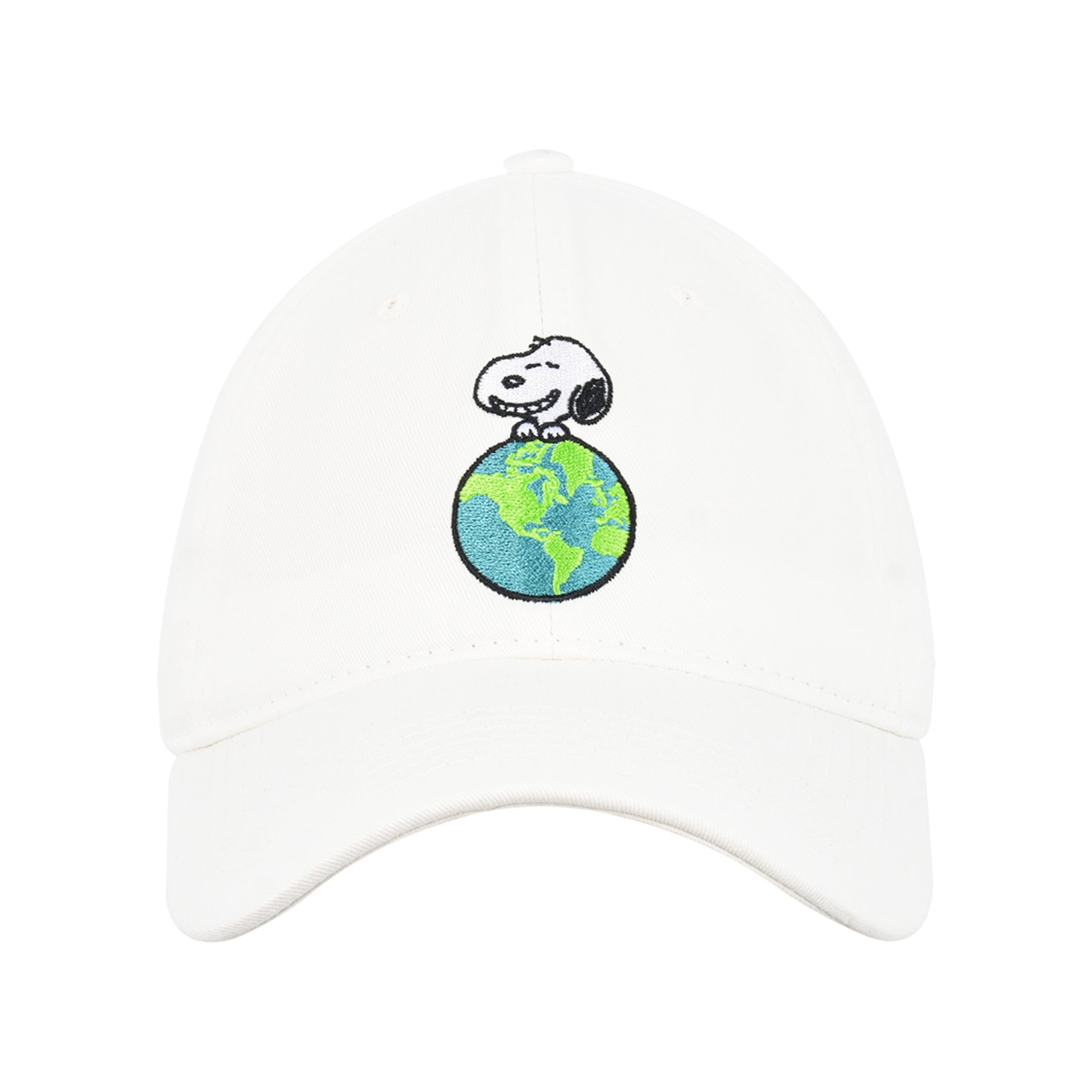 Show your love for the planet with this officially licensed Snoopy dad hat. Crafted from lightweight, durable recycled cotton twill, it offers comfort and a curved brim for sun protection. The adjustable buckle ensures a perfect fit for all adults, while the charming embroidery of Snoopy atop the Earth and the eco-friendly message make it a stylish, meaningful accessory for everyday wear.