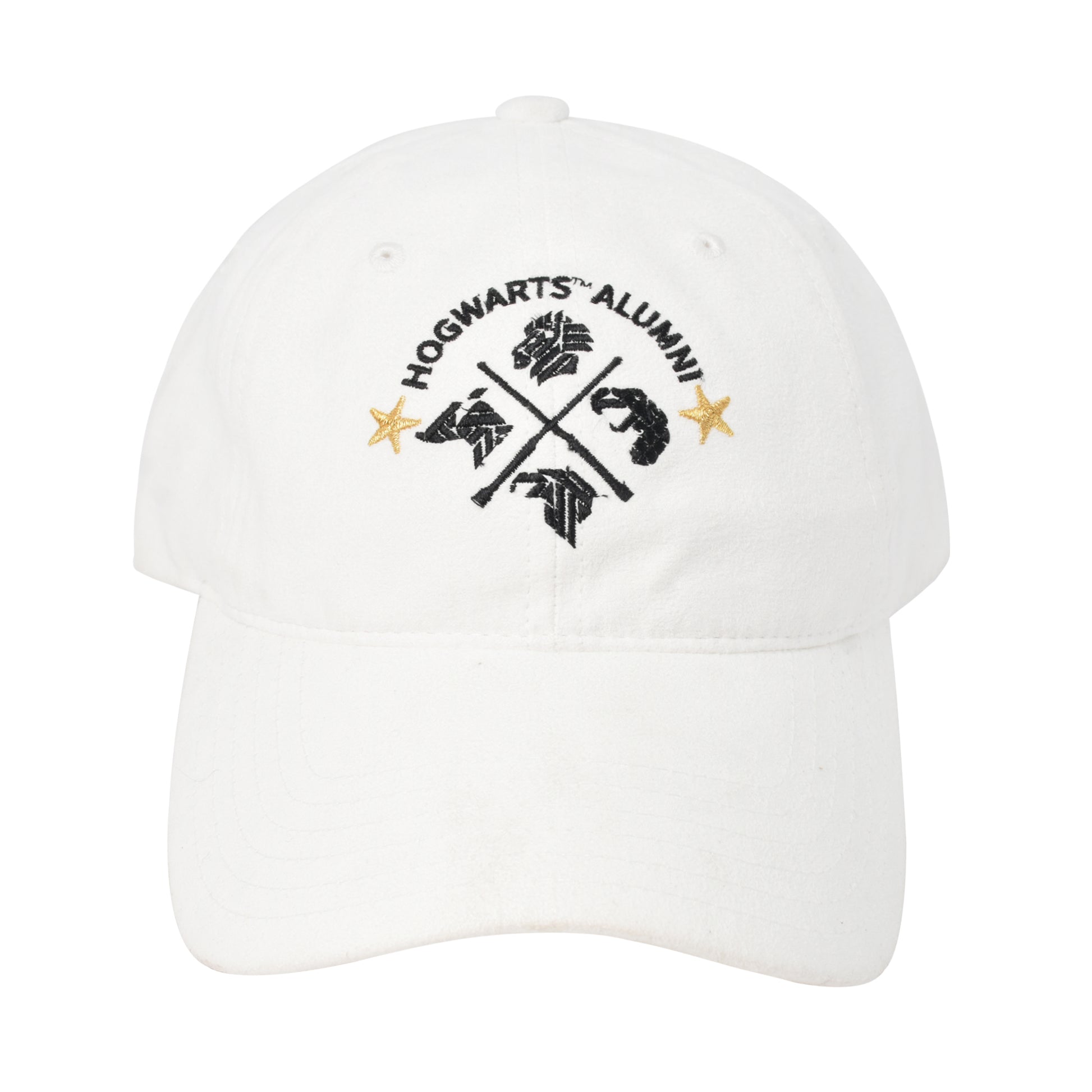 Celebrate your wizarding roots with this officially licensed Harry Potter “Hogwarts Alumni” baseball cap. Featuring embroidered house mascots—Gryffindor, Slytherin, Hufflepuff, and Ravenclaw—arranged in a classic crest style with gold star details, this hat is a stylish nod to your magical alma mater. The crisp white design and adjustable strap make it a versatile piece for everyday wear, whether you’re strolling through Diagon Alley or just heading out in the Muggle world.