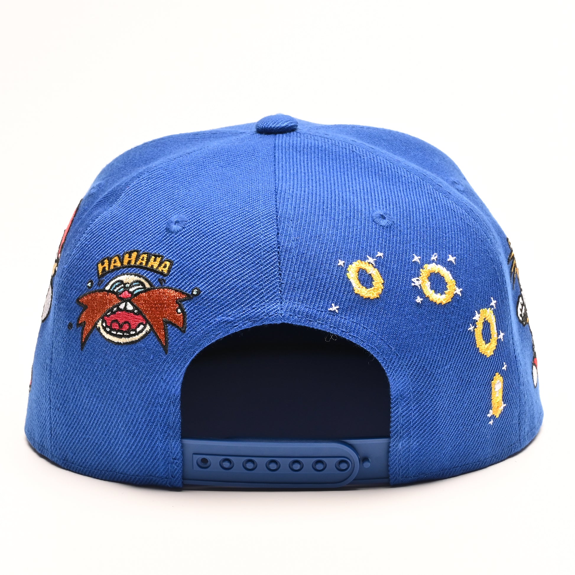 Show off your love for Sonic the Hedgehog with this royal blue flat bill snapback cap. Featuring a vibrant embroidered Sonic running on the front and his iconic friends Tails and Knuckles on the sides, this adjustable hat ensures a comfortable, snug fit for all adult head sizes. Made from lightweight, durable faux wool polyester, it offers both style and protection with its stitched flat brim. Officially licensed by Sega, this cap combines fandom and functionality into one sleek accessory.