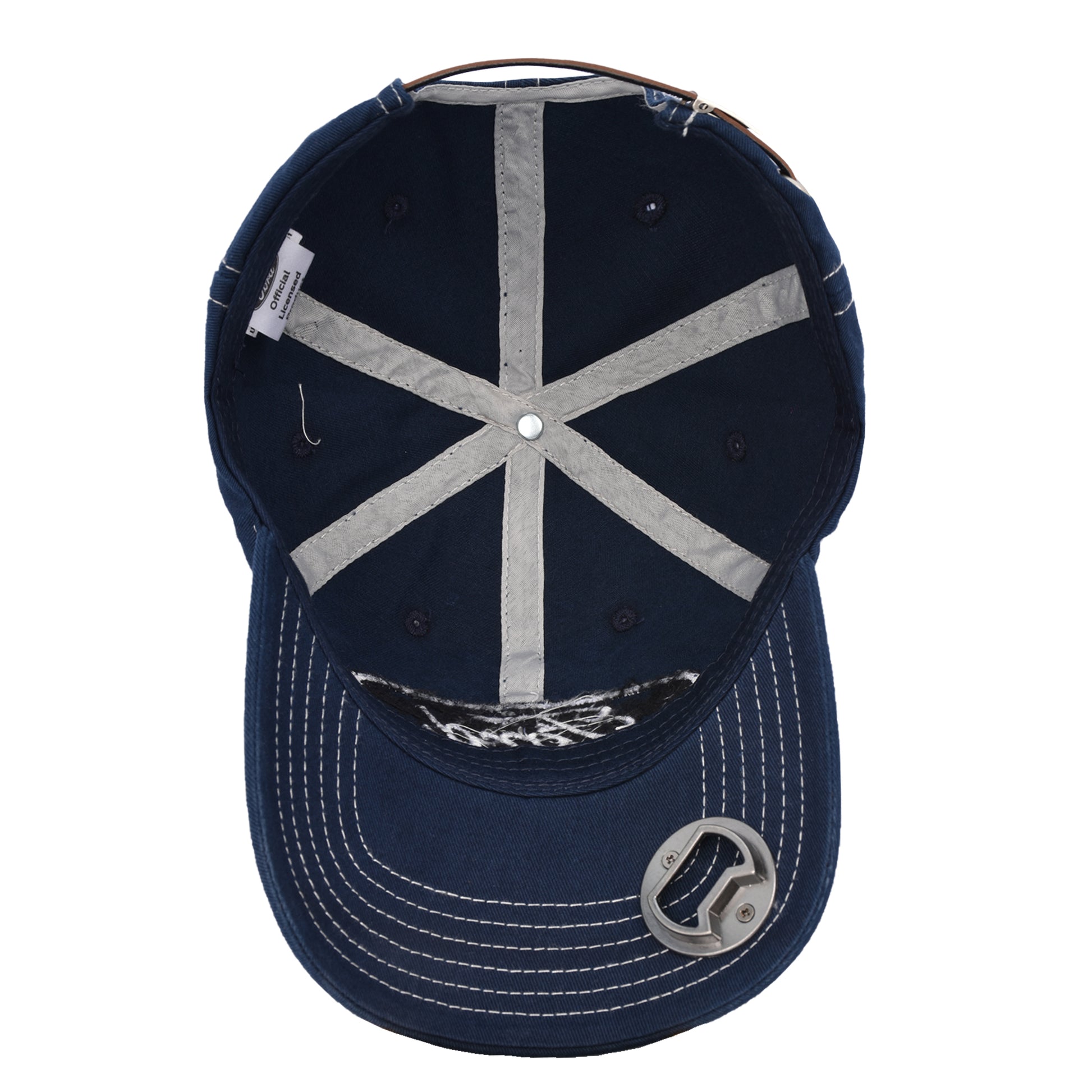 Show your Ford pride with this blue washed cotton dad hat featuring an embroidered Ford logo and a unique functional bottle opener on the curved brim. The adjustable buckle closure ensures a comfortable, snug fit for all head sizes. Made from 100% lightweight cotton, this hat offers durability and keeps the sun’s UV rays out of your eyes thanks to its stitched curved bill. As an officially licensed Ford product, you can trust in its quality and authenticity. Ideal for everyday wear or outdoor adventures, with simple care recommended by hand washing only.