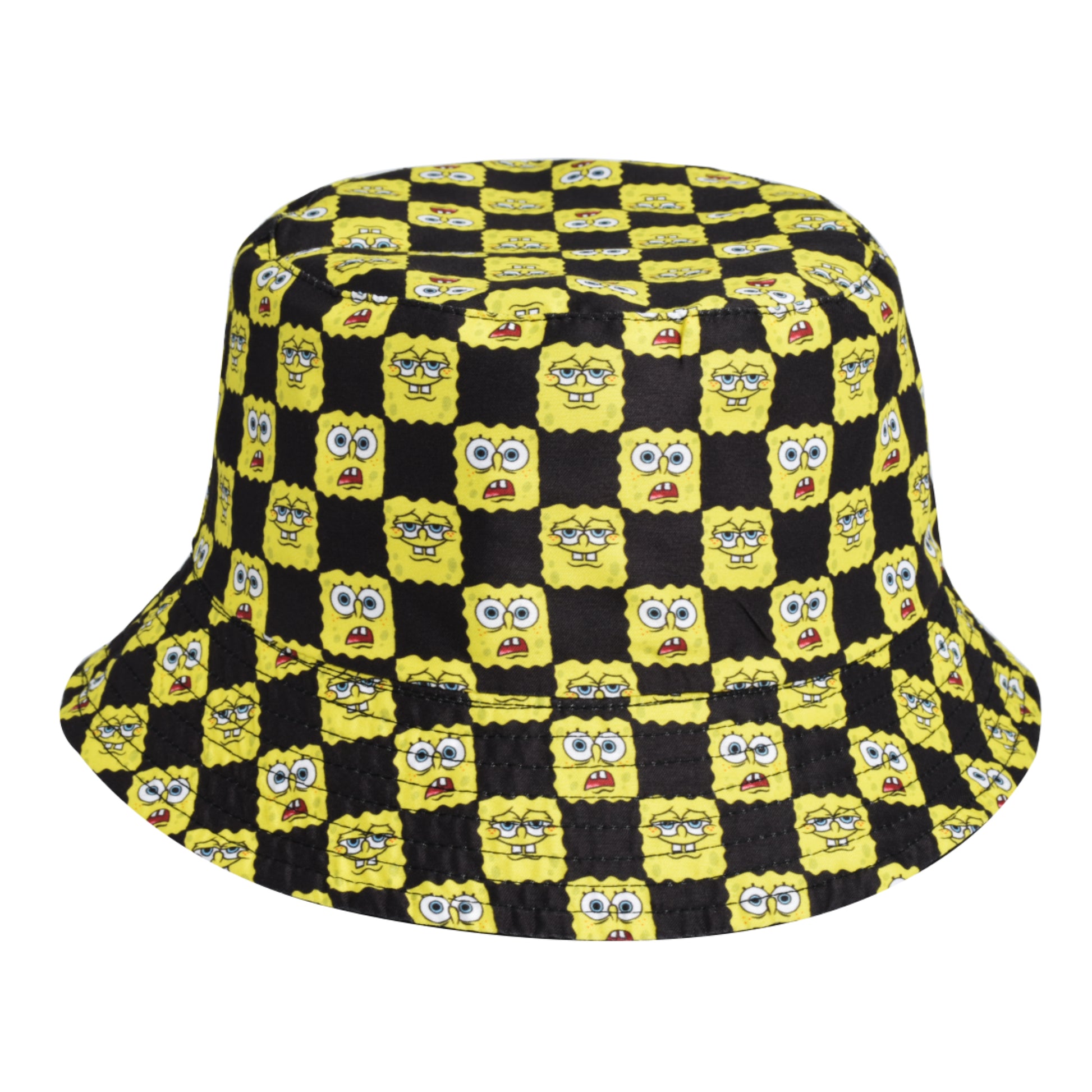 Spongebob Squarepants Bucket Hat, Packable Travel Hat, Reversible Wide Brim Summer Cap, Black and Yellow, One Size